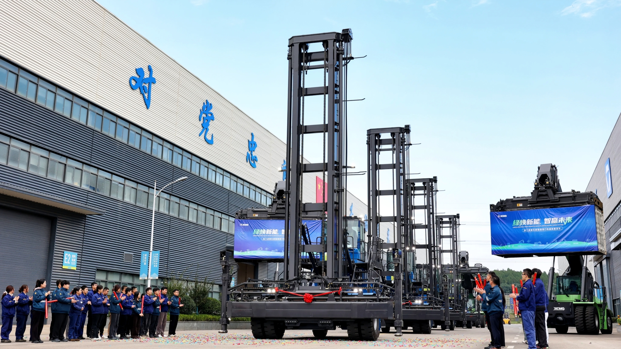 ▲今年以来,徐工已陆续向浙江海港交付近70台新能源港口机械,形成规模化绿色作业集群 蓝莓TV在线观看.