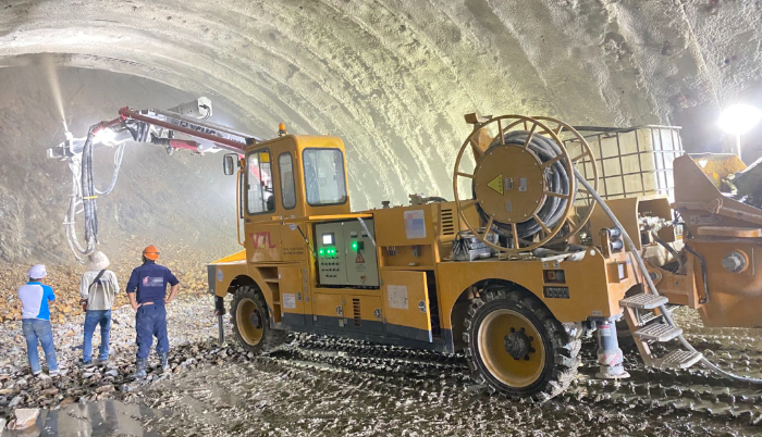 越南某隧道施工现场,三台徐工混凝土喷浆车正在进行一场“双向奔赴”式施工 蓝莓TV在线观看。
