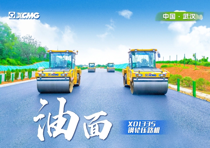 紧跟着摊铺工作上场的,是我们的老朋友——4台XD133S双钢轮压路机,由它们进行路面初压及复压,这款压路机诞生之出就备受瞩目,已经征战过各类重大工程,尤其它的柔性行驶起停控制技术,能有效消除整机对路面的推挤,避免产生拥包,在提高路面平整度方面的实力有目共睹 蓝莓TV。