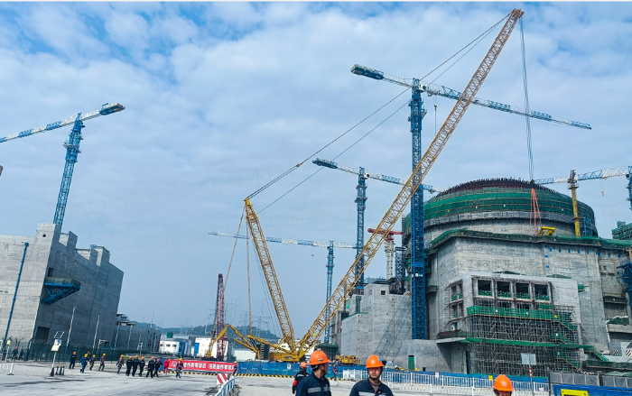 近日,福建某大型核电二号机组建设项目中,一台徐工的XGC800-I履带起重机现身工程项目现场,担当二号机组结构模块和附属设备的安装工作 蓝莓TV。