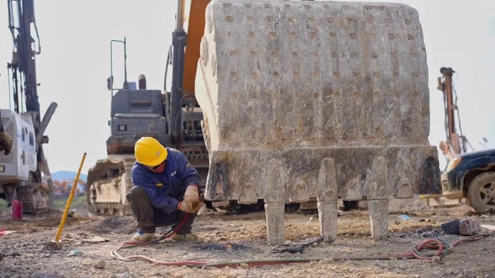 整个施工周期,徐工挖机投入设备保障车辆4辆,包含1辆综合服务车,拥有焊接、发电等全功能;设置两个仓库,储备整个工地百余台设备的备件,备件前移到工地,快速响应,保证设备投产效益;同时配备多名服务人员,服务大区经理专项专抓,高度重视,5分钟响应,两小时解决问题,24小时都能保证施工效率。