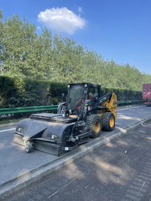 徐工滑移装机搭配封闭式清扫器快速清理铣刨后的路面。
