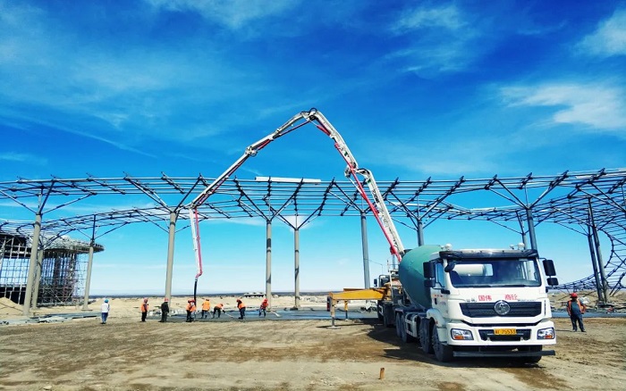 贺兰山下,塞上江南,近日,中宁±800千伏换流站厂房施工现场,徐工两桥37米泵车灵动作业,闪耀宁夏大地 蓝莓TV。