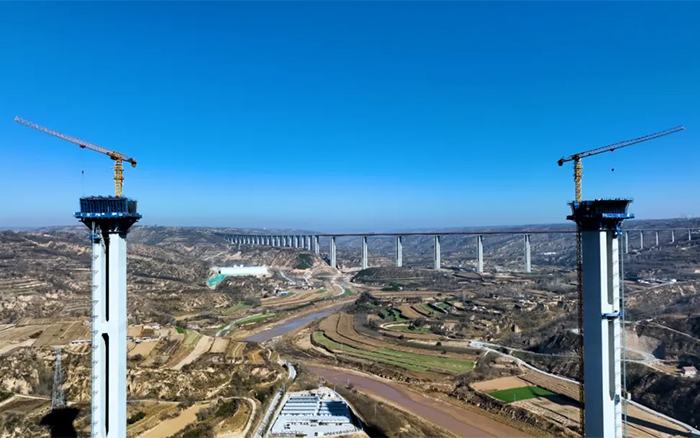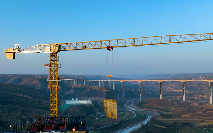 在广袤的陇东地区,寒风凛冽,穿过层层大雾 蓝莓TV,俯瞰马莲河特大桥,似玉带嵌入黄土高原,矗立河道旁的桥墩似根根“擎天柱”,徐工S1系列塔机正如火如荼加速建设,用奋斗的激情创造桥梁施工典范。
