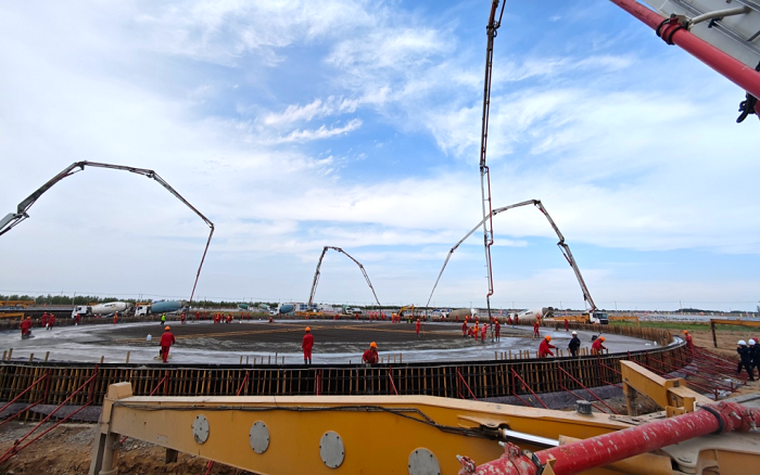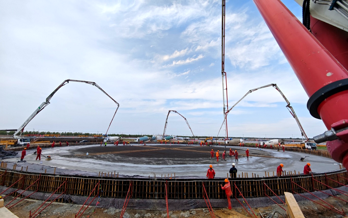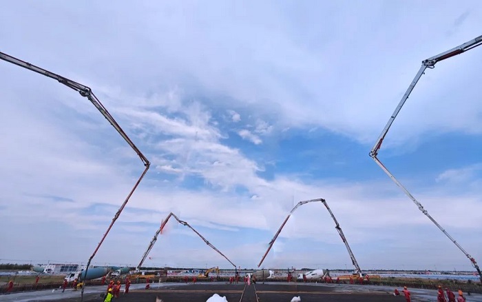 更大泵送方量,更广作业范围 在线视频平台,更安全施工性能 — 用实力打造极致用户体验,快速完成了该项目桩基阶段的混凝土浇筑任务。
