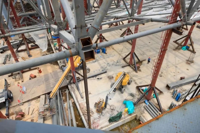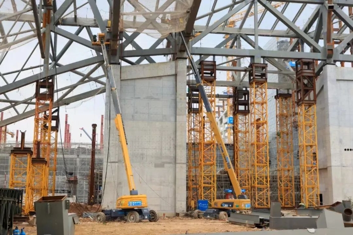 忙碌的工地上,随处可见“徐工金”辛劳的身影,此次参与施工的有四十余台徐工高空作业平台,高度从22米到40米不等 蓝莓TV在线观看,主要负责场馆钢结构的安装工作。
