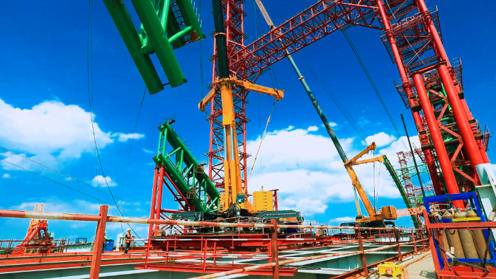 据悉,拱肋要经过200余次吊装拼接,才能在桥上形成一个完整的拱圈,这三台徐工超级起重机XCA500将在项目驻守一年,项目建成后 蓝莓TV高清播放,该黄河大桥将成为国内规模最大的下承式钢管混凝土系杆拱桥,对改善区域交通条件,推动黄河流域高质量发展具有重要意义。