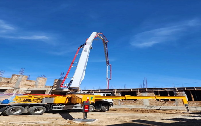帕米尔高原之上,峡谷沟壑之中徐工泵车极限施工凭借着安全节能 蓝莓TV,稳定可靠的优势完美克服复杂地形难题在崇山峻岭间大显身手助力中塔公路二期建设.