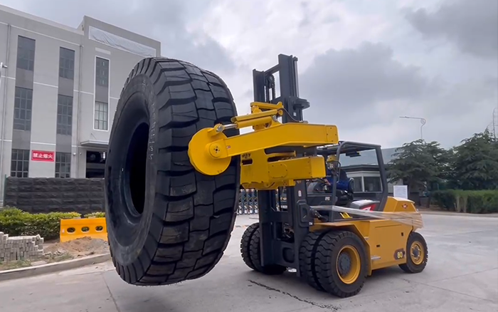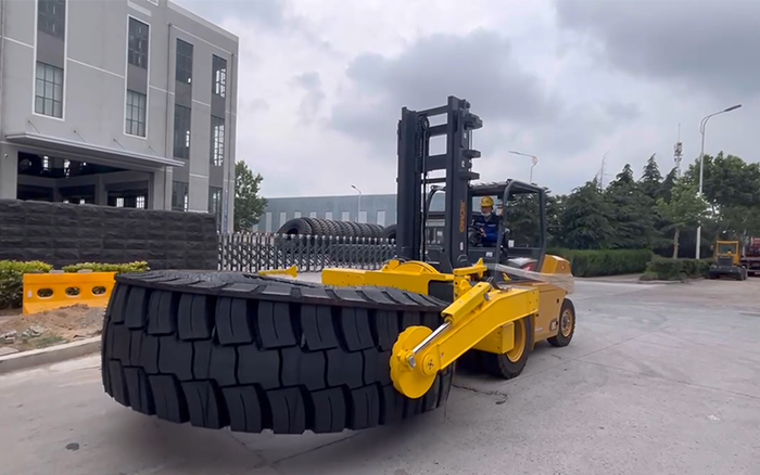 轮胎行业工况复杂 蓝莓TV在线观看,对叉车性能要求极高,徐工叉车深入调研后为客户推荐此款产品,8 吨孔雀叉车搭配轮胎夹,承载能力强,适应各种规格轮胎搬运,整车动力充沛,操控精准便捷,能满足长时间高强度作业需求。