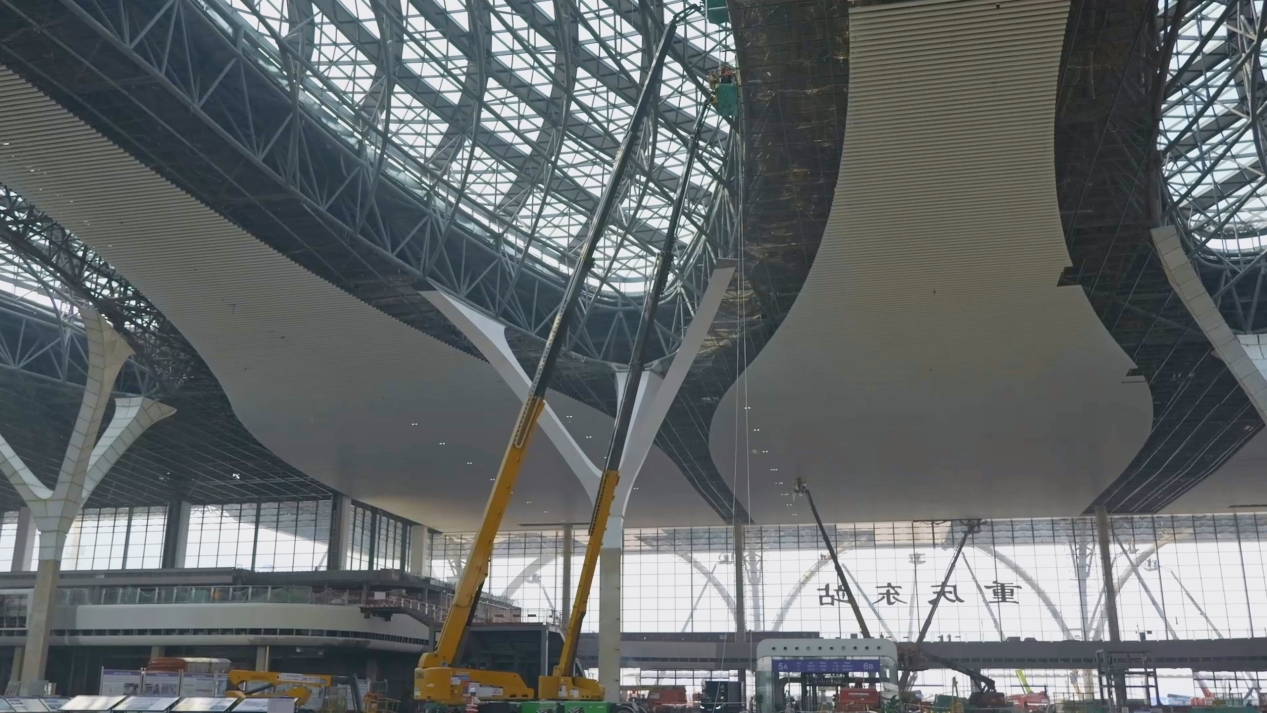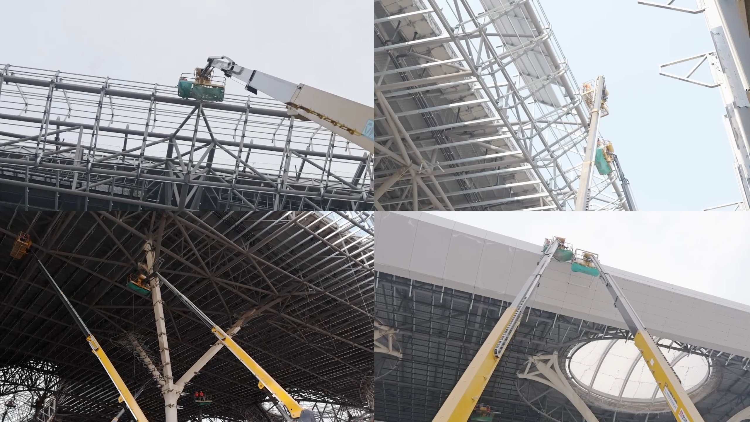 在重庆东站,十数台高空作业平台正在如火如荼的进行钢结构的安装工作,这些高空作业平台作业精准高效,动作平稳灵活,为施工工作节省了大量时间与人力成本 蓝莓TV。