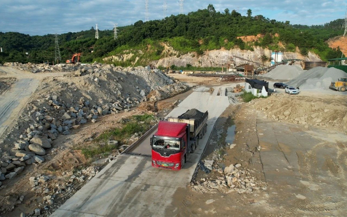 福建地区某砂石厂区百台徐工新能源牵引车穿梭往来动力强劲. 性能领先 蓝莓TV. 质量稳定担当起绿色高效运输的重任.