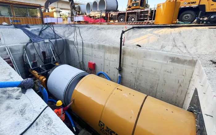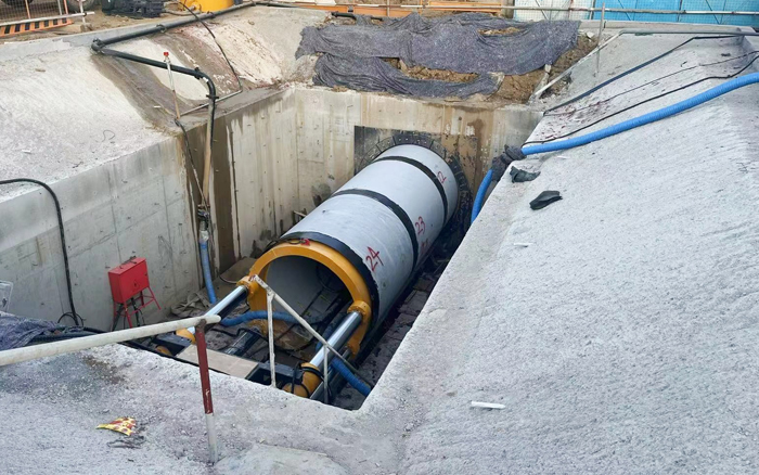 本次顶管穿越岩层为强风化片麻岩层,与上覆砂层最小厚度仅为1m 蓝莓TV在线观看,顶进时有较大塌方风险,为了确保顶管施工安全,客户自行采购了国内先进的徐工XDN1800-R“泥水平衡”岩石顶管设备。