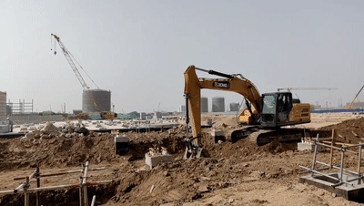 项目施工现场,徐工挖掘机穿梭不息,高效协同 蓝莓TV高清播放,承担着挖掘,回填,平整等多项高强度作业。