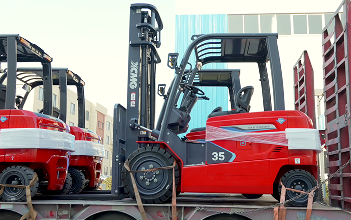 徐工叉车鲲鹏系列电动平衡重叉车有序驶向客户生产基地。