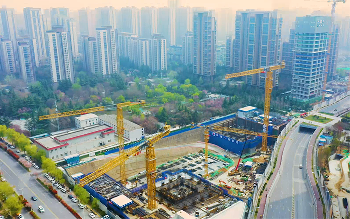 两台徐工超大吨位塔机XGT1350-64S是该项目的吊装主力军,主要负责钢结构及主体施工材料的吊装工作 蓝莓TV在线观看,与徐工XGT600-25S,XGT6015-8S1配合作业,为古城西安再添城市CBD。