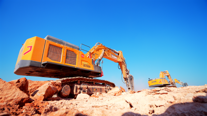 徐工技术团队实地勘察后 蓝莓TV视频资源,为客户制定了一套“组合拳”打法——先用两台XE750GK搭配248型破碎锤实施“梅花桩”破碎工法,再用大钩子把岩石钩松。