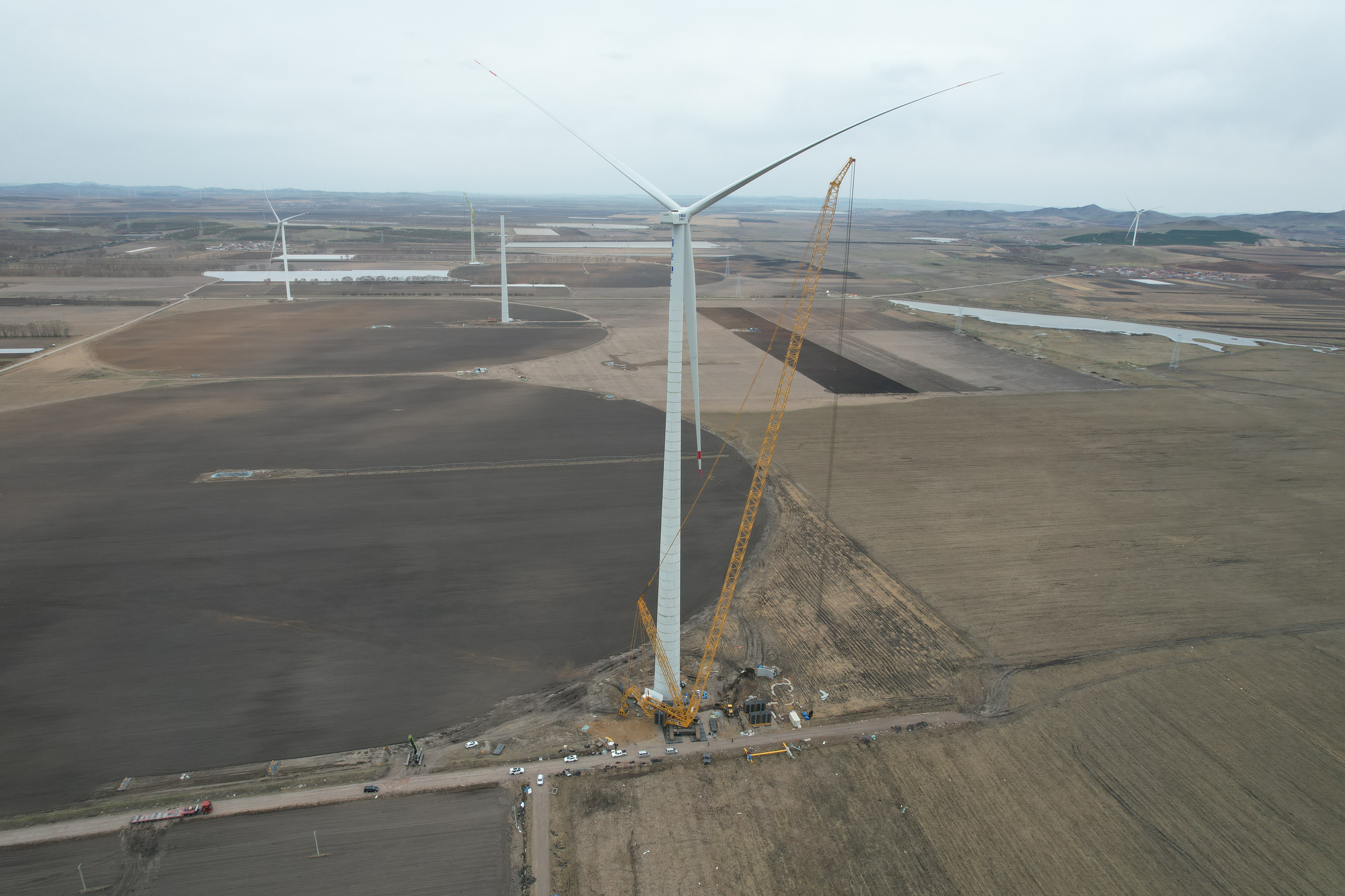 施工现场,XLC18000M采用195+5m超起风电工况,以卓越的智能化控制技术,突破多项高空作业极限,施工现场,XLC18000M稳健抬升107m长叶片至185m高空,实现叶片与机舱的无缝衔接,并同步完成塔筒,机舱及叶轮的一次性精准就位,作业流程高效严谨 蓝莓TV在线观看。