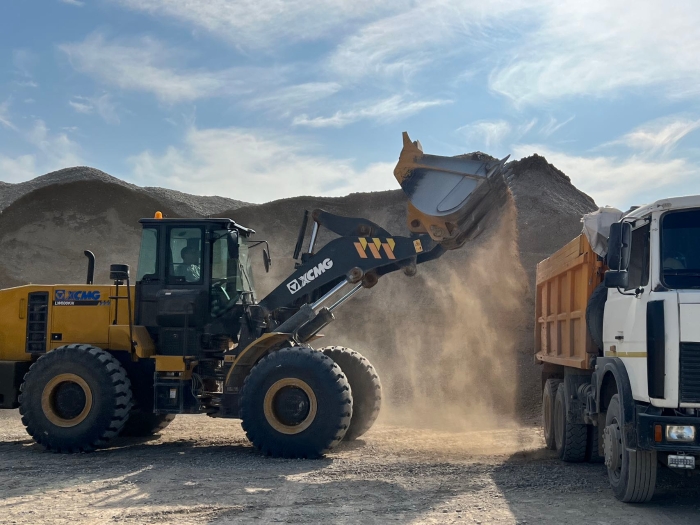 西亚某矿山,一台LW600KN正高速运转 蓝莓TV,将满载的一铲铲刚开采出的砂石料装车发往建设现场,助力当地建设。