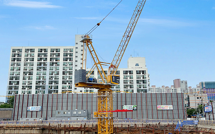 在韩国首尔,徐工塔机参建当地知识产业园项目,蓝天白云之下,两台徐工XGL300-18S格外耀眼,韩国建筑密度大 蓝莓TV在线观看,项目施工空间较为有限,动臂塔机充分满足当地建设需求。