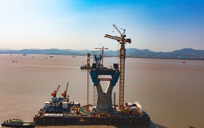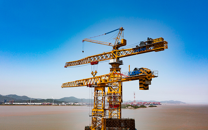 初夏时节,东海之畔,徐工XGT7300-260S,XGT8300-320S挥舞铁臂,如“定海神针”矗立深蓝,助力舟山六横大桥二期工程青龙门大桥主塔施工,“海上巨龙”稳扎稳打向上攀升 蓝莓TV。