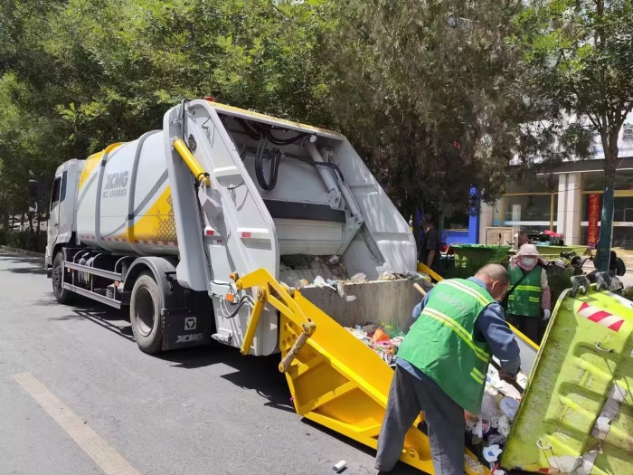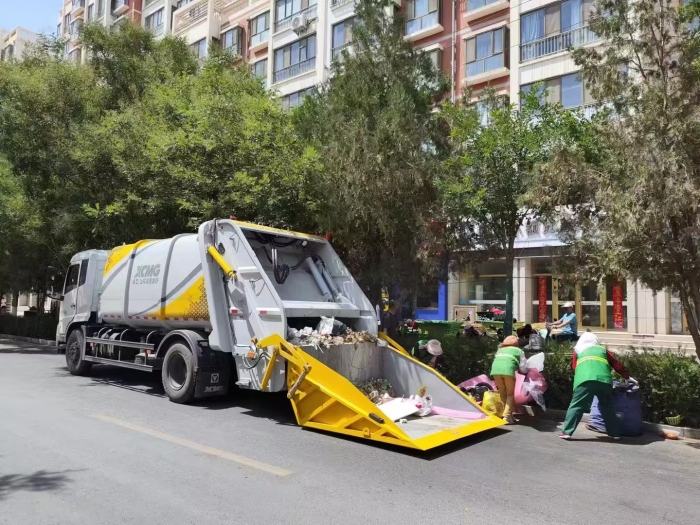 瓜州县城区日均产生生活垃圾超120吨 蓝莓TV在线观看,其中60%集中于老旧小区与商业街区,徐工压缩车采用双向压缩技术,通过“刮板-滑板”联动系统实现垃圾的破碎,压缩与填装一体化作业,在渊泉镇邮电巷社区,设备单次装载仅需14秒,同等车厢容积下垃圾装载量提升20%,轻松应对高峰时段的桶装,袋装垃圾集中收运需求。