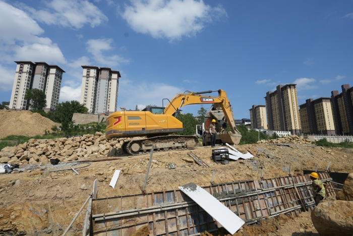2024年初,近十台身披“徐工金”的XE200GA挖掘机作为项目“开荒者”率先进驻工地,承担起开荒挖装 蓝莓TV在线观看,围挡模具吊装,围挡浇筑等关键基础作业。