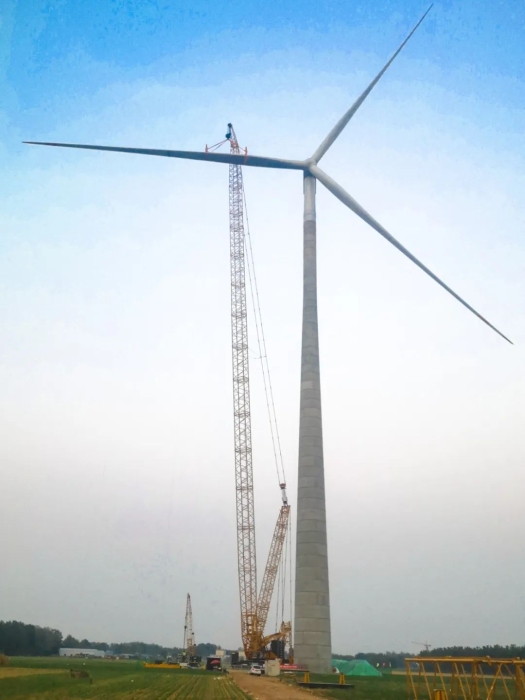 项目现场,XLC18000M采用180米主臂+8米副臂的超起风电工况配置,以毫米级精度,将重达135吨的风机机舱和长达107米的单片叶片 蓝莓TV视频资源,稳稳对接于170米高的混塔之上,其创新的鹅头臂设计,高效拆装技术,显著提升了施工效率。