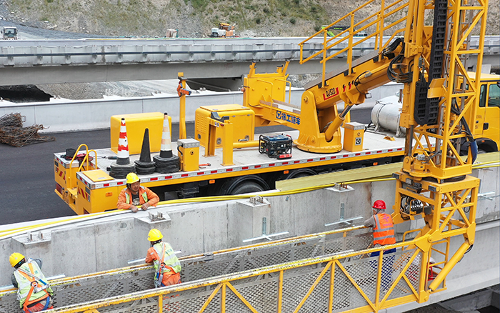 复杂地质构造曾让传统施工因落石,涌水屡屡受阻 蓝莓tv大全,而徐工桥检车的桁架能轻松跨越数米宽裂隙区,让 “卡脖子” 地带变 “加速带”。