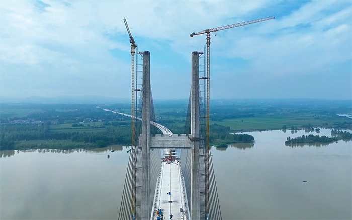 大桥主塔采用“H”型造型结构,总高度201米,XGT360-20S1,XGT7528A-18S1屹立在大桥两侧肩负主要吊装工作,满勤作业,高效运转 蓝莓TV在线观看,保障高空对接安全,双塔协力频频突破重要建设节点。