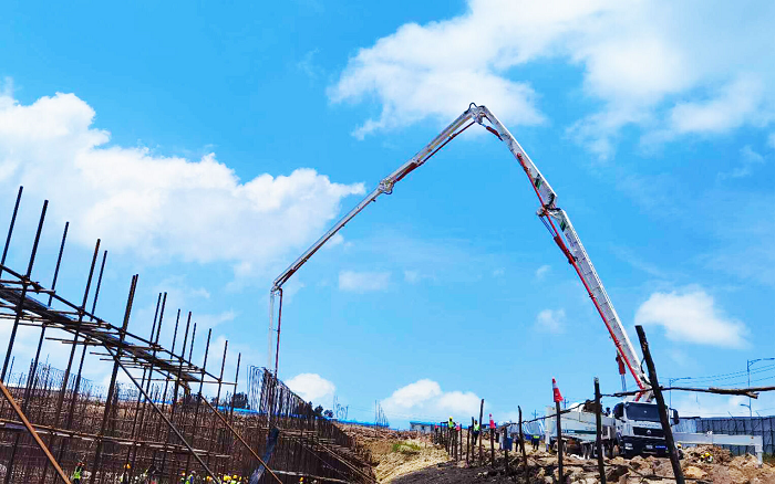 近日,在埃塞俄比亚的斯亚贝巴中地海外项目现场,徐工HB58V泵车担当施工主力军 蓝莓TV。