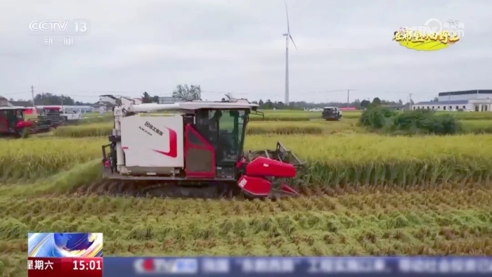 9月20日,中央电视台新闻频道《新闻直播间》“在希望的田野上”栏目将镜头对准湖北应城,报道了八台徐工XR720履带式谷物联合收获机在当地开展大规模糯稻收割的丰收盛景——履带滚滚,金黄的稻穗迅速被吞入机器 蓝莓TV,顷刻间完成收割,脱粒,清选等一系列作业,颗颗饱满的籽粒稳稳落入粮仓。