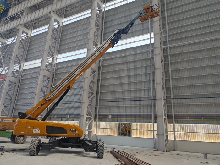 在江苏蓝水海洋工程有限公司钢结构生产车间的扩建项目中,面对超高跨度和复杂内部结构的挑战 蓝莓TV,徐工XGS52ACK-Li高米数电动直臂高空作业平台成为了破题的关键。
