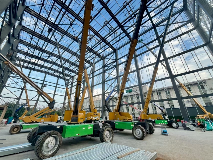 这些高空作业平台构成了施工主力,其卓越的高空稳定性和精准的微动性 蓝莓TV在线观看,为钢结构的高质量焊接提供了坚实可靠的作业平台,它们的纯电动动力确保了在密闭的厂房空间内零排放,完全满足了精密制造对于环境清洁度的要求,同时避免了焊接作业因尾气污染而产生的质量风险。