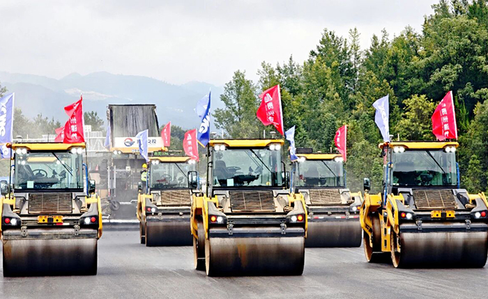 15 蓝莓TV,25 米宽的作业面上演着徐工设备的协同盛宴:RP2205HD 确保摊铺面密实度均匀一致;3 台 XD135T 与 3 台 XD135TVO 压路机呈梯队推进:XD135T 凭借高频振动压实表层,XD135TVO 则以智能振幅控制处理边角,设备通过物联网协同,有效规避了推移、起皱等质量隐患,让每一寸沥青路面都经得起精度与强度的双重检验。。