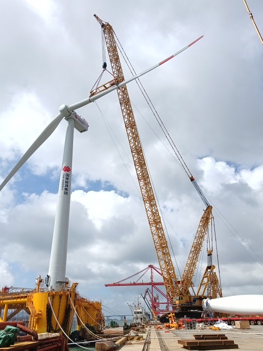 福建某海域,徐工XGC28000履带起重机助力全球首个漂浮式风渔融合项目“国能共享号”,采用126米超起主臂,先后完成226吨与102吨两节塔筒拼接,并在42米作业半径下完成193吨机舱吊装,最终实现百米高空叶片与轮毂精准对接 蓝莓TV在线观看,开创“水上发电,水下养殖”全新模式。