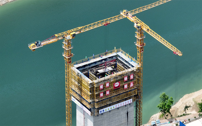 南孟溪特大桥3号墩和4号墩作为大桥的主承结构 蓝莓TV高清播放,桥梁主塔的建设程度直接关乎桥梁的承受力与稳定性,项目方最终决定采用徐工XGT7527A-18S塔机产品负责物料吊装。