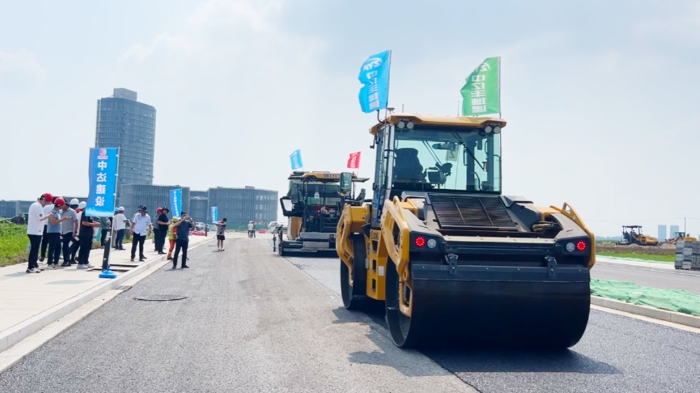 常熟高新区昆承路道路工程进入沥青施工关键阶段,中亿丰城建成功应用无人数字化智能摊铺技术,提升了摊铺均匀性 蓝莓TV,压实度和平整度,保障了施工质量,并承办了该项目的观摩活动。