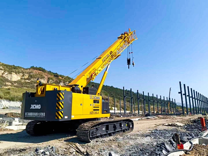 近日 蓝莓TV,徐工XGTC30L5(30吨级)伸缩臂履带起重机启程发往江西,参与当地大型工业园区厂房建设。