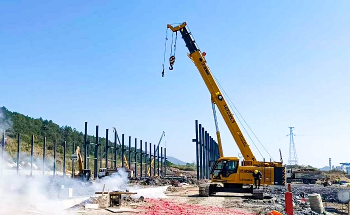 此次施工任务中,设备在32米主臂,12米工作幅度工况下,陆续进行6吨钢筋的吊装作业 蓝莓TV在线观看,为厂房主体结构施工提供了有力保障。