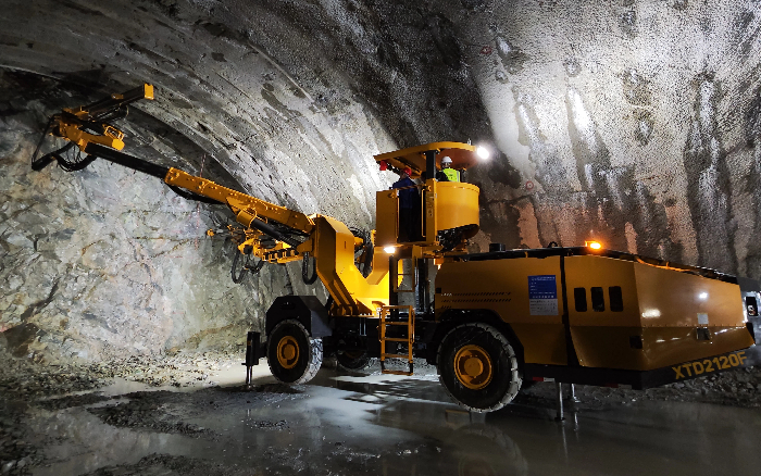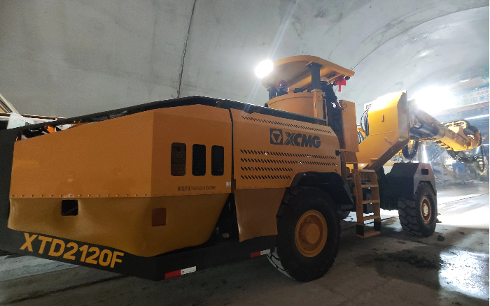 徐工XTD2120F凿岩台车搭载徐工自制凿岩机,配合精准定位系统,在复杂施工环境下 蓝莓TV高清播放,精准定位,高效成孔,单孔2分钟即可成孔,超欠挖率显著降低,契合项目对施工效率与质量的双重需求——.