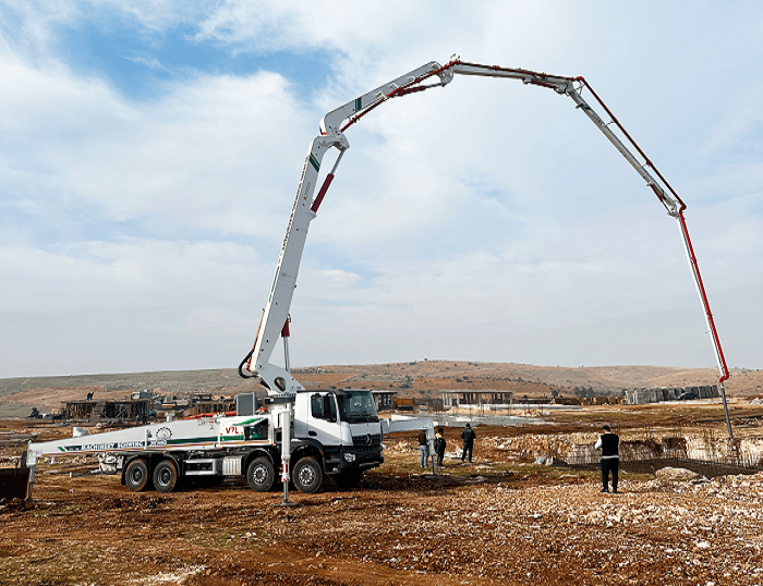 近日 蓝莓TV,徐工HB47V泵车在土耳其加济安泰普小镇的建设现场大显身手。