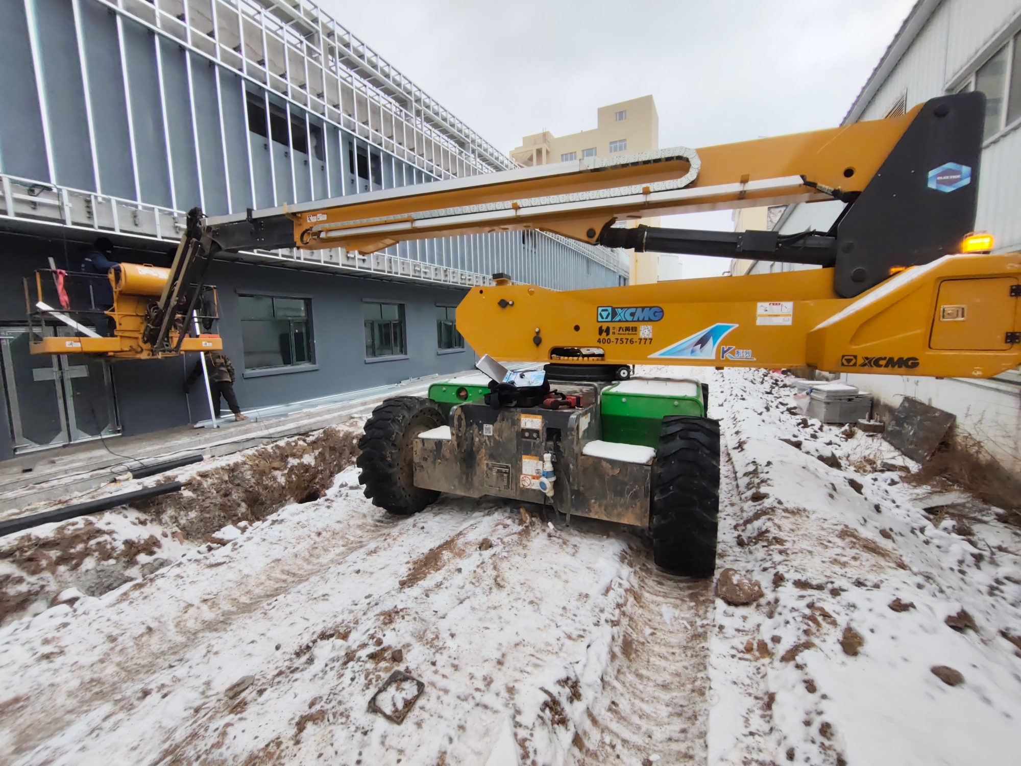该项目地处严寒的哈尔滨,11月底的施工现场积雪未消,地面湿滑,对设备的抗寒性能和作业稳定性提出极高要求,徐工高空作业平台凭借扎实的底盘设计和抗寒配置,在冰雪场地中灵活移动,臂架精准伸展至建筑外立面,助力工人完成钢结构安装,幕墙搭建等作业环节,即便在低温环境下,设备的液压系统和操控性能依旧稳定 蓝莓TV在线观看,保障了施工流程的连续性。