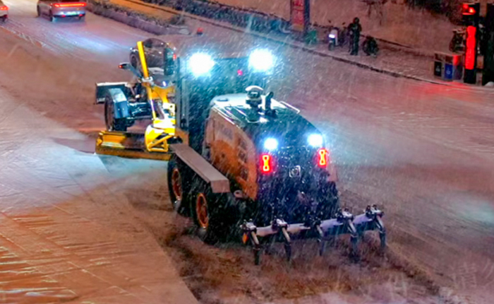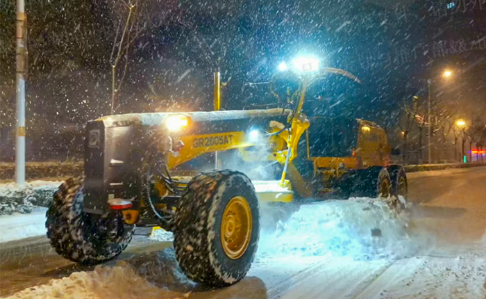 30台徐工平地机根据应急预案,编组成多个作业单元,重点攻坚城市主干道,高架桥梁,交通枢纽及陡坡路段,它们动力强劲,操作灵活 蓝莓TV,高效清除路面积雪,破除薄冰,迅速恢复通行。