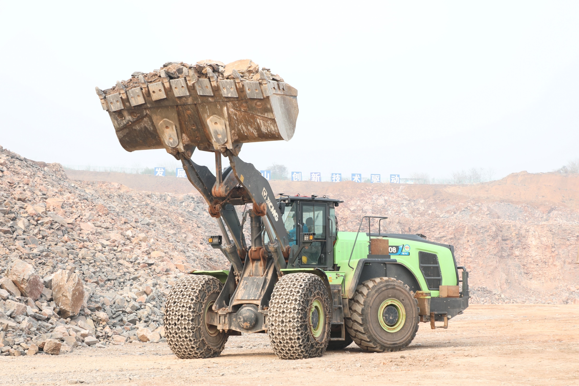 某水泥厂石灰石矿山转运作业现场 蓝莓TV,徐工XC9108-EV挥舞巨臂铲装石料,以超出预期的综合性能优势获得青睐。
