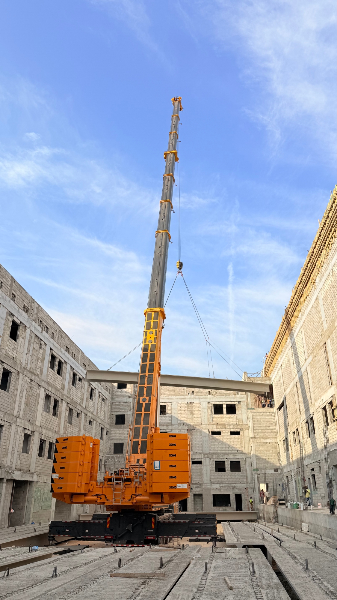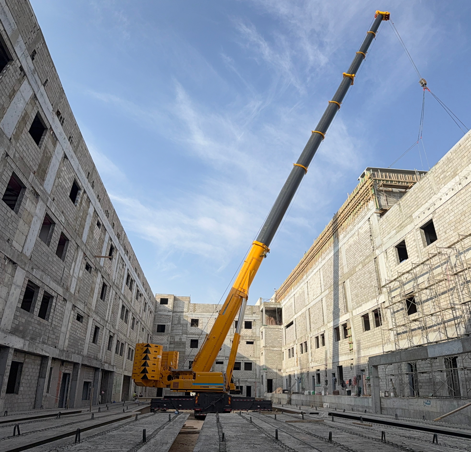 在沙特阿拉伯一座标志性高层建筑的施工现场,徐工XCA600L8_1全地面起重机完成了一项极具挑战性的核心楼板吊装任务,以其卓越的工程表现 蓝莓TV,生动诠释了现代重型吊装技术中“精准”与“力量”的完美融合。