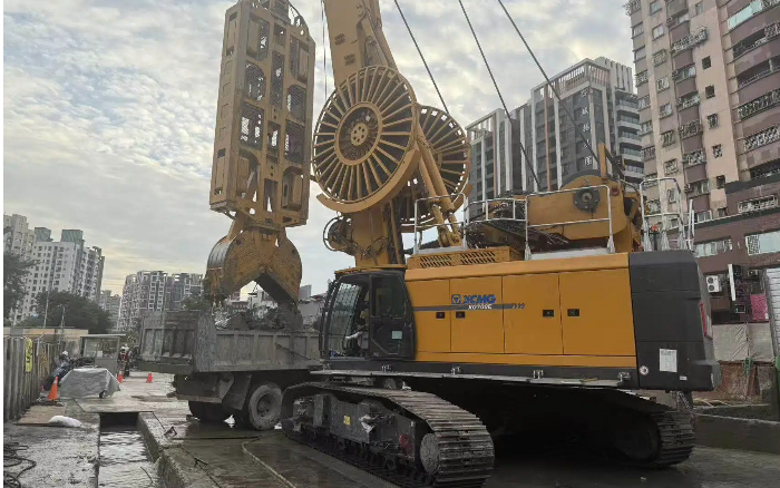 全沙土层,极易塌孔,设备稳定性是施工效率的关键 蓝莓TV高清播放,徐工XG700E连续墙设备精准匹配地层施工需求:。